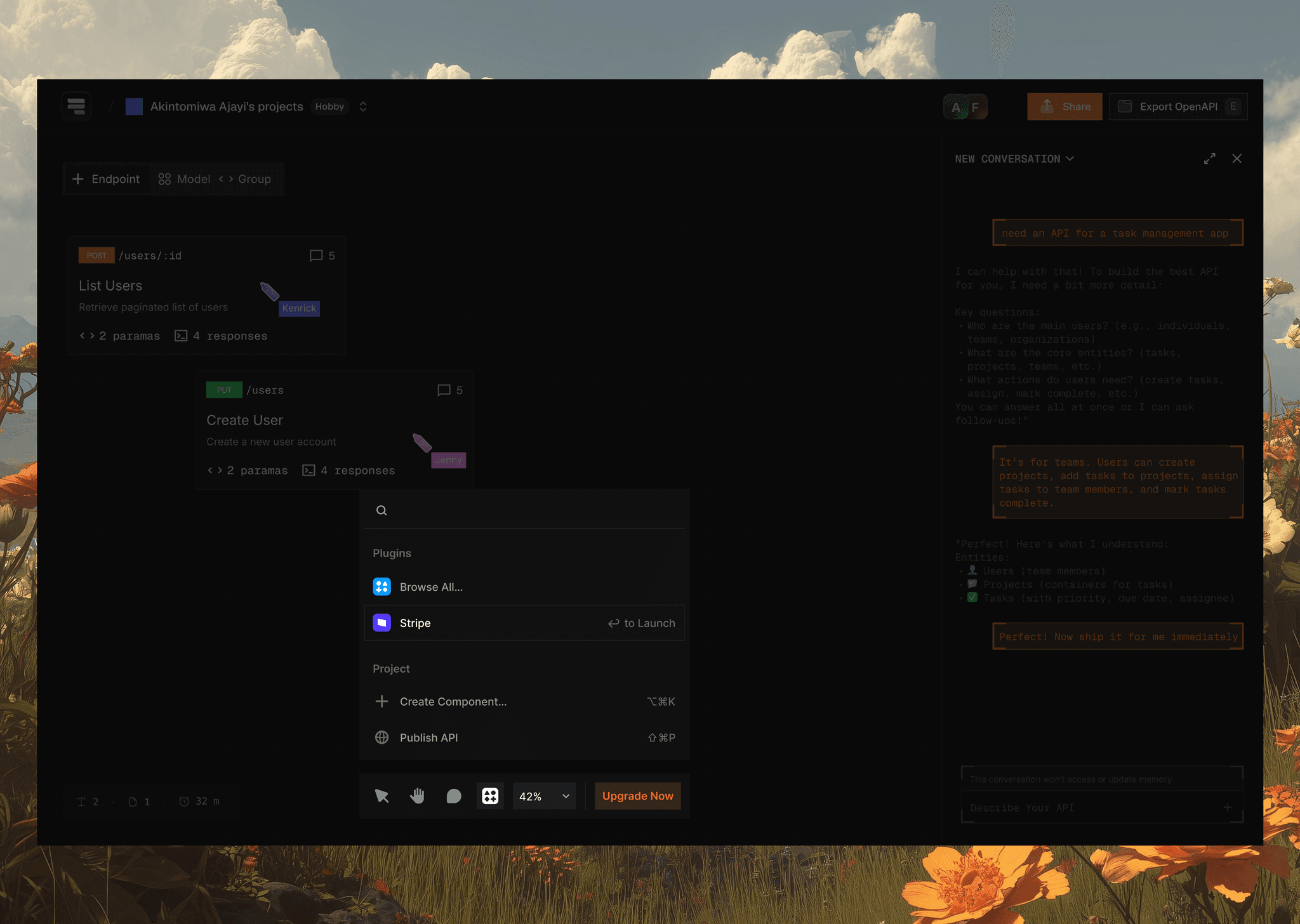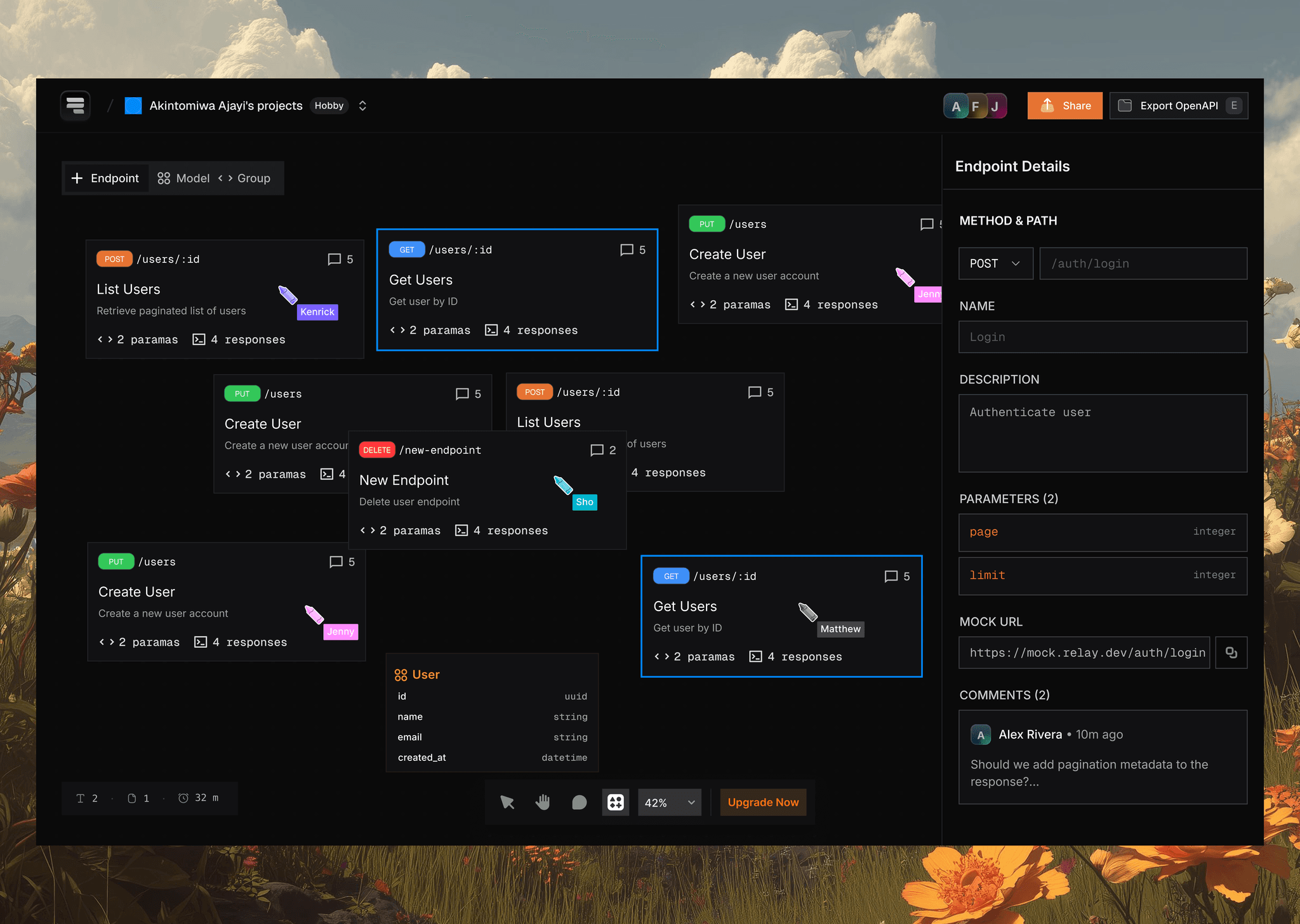 Users can sign up instantly with GitHub or Google and create a shared workspace in seconds. This lightweight onboarding flow is designed to get teams into the canvas quickly, where they can start building APIs and invite collaborators without setup overhead or infrastructure configuration.